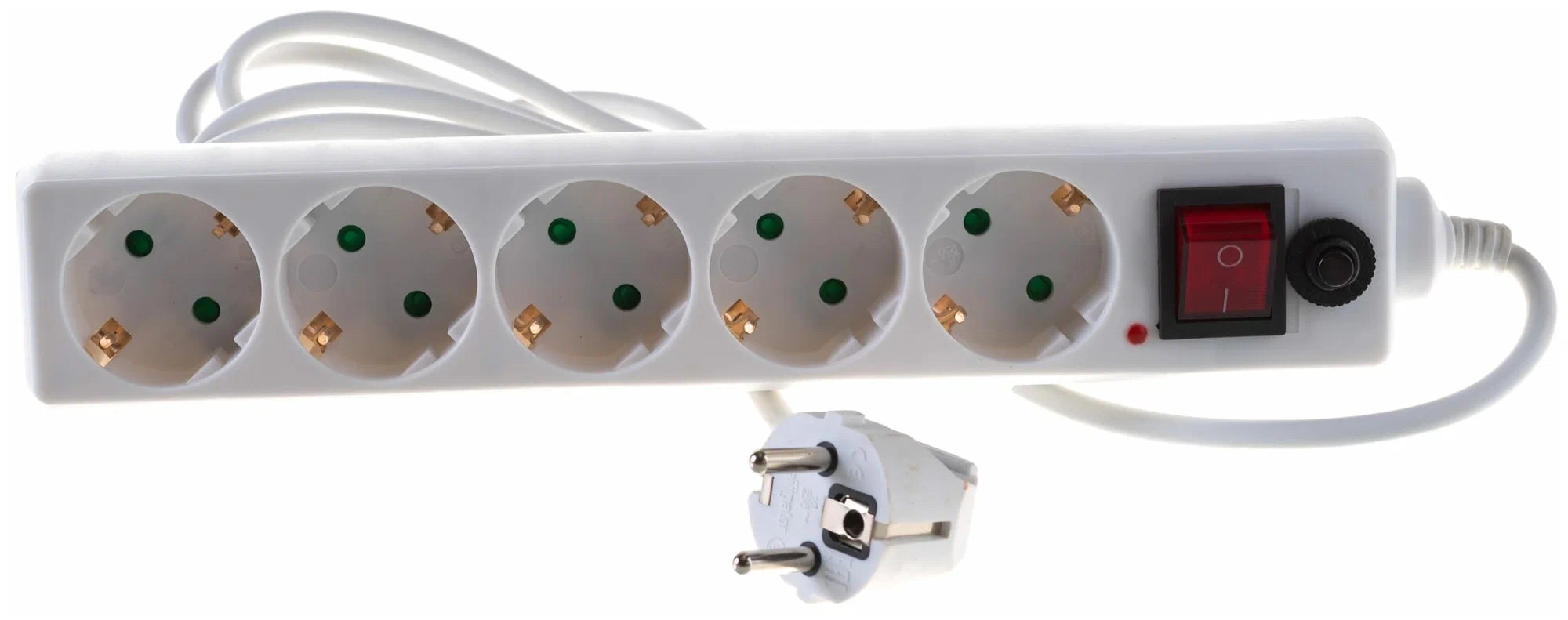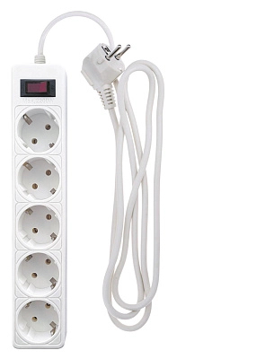 Корпус из негорючего пластика. Выключатель с индикатором. Сетевой кабель с вилкой евростандарт. 5 розеток. Защита от пернапряжения и импульсных помех.
