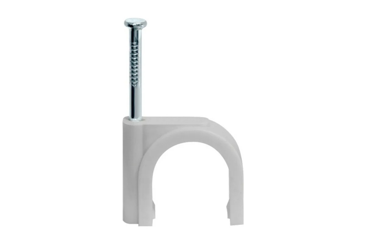 Скоба VKL electric 12 мм, круглая, пластиковая, уп. 50 шт. 9988749 предназначена для быстрого и надежного крепления круглых кабелей. Возможно крепление к дереву, прессованному картону и швам кирпичной кладки, к штукатурке, бетону, кирпичу. Изготовлена из гибкого негорючего ударопрочного полипропилена, гвоздь - закаленная оцинкованная сталь. Технические характеристики скобы VKL electric 12 мм Тип фасовки шт. Фасовка 50 шт Max диаметр кабеля 12 мм Цвет белый Материал полипропилен Покрытие цинк Метиз в комплекте гвоздь Материал гвоздя закаленная сталь Мах высота кабеля 12 мм