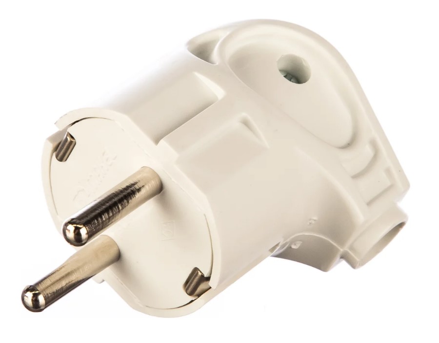 Угловая вилка с заземлением предназначена для нестационарного подсоединения электротехнического оборудования к сети.