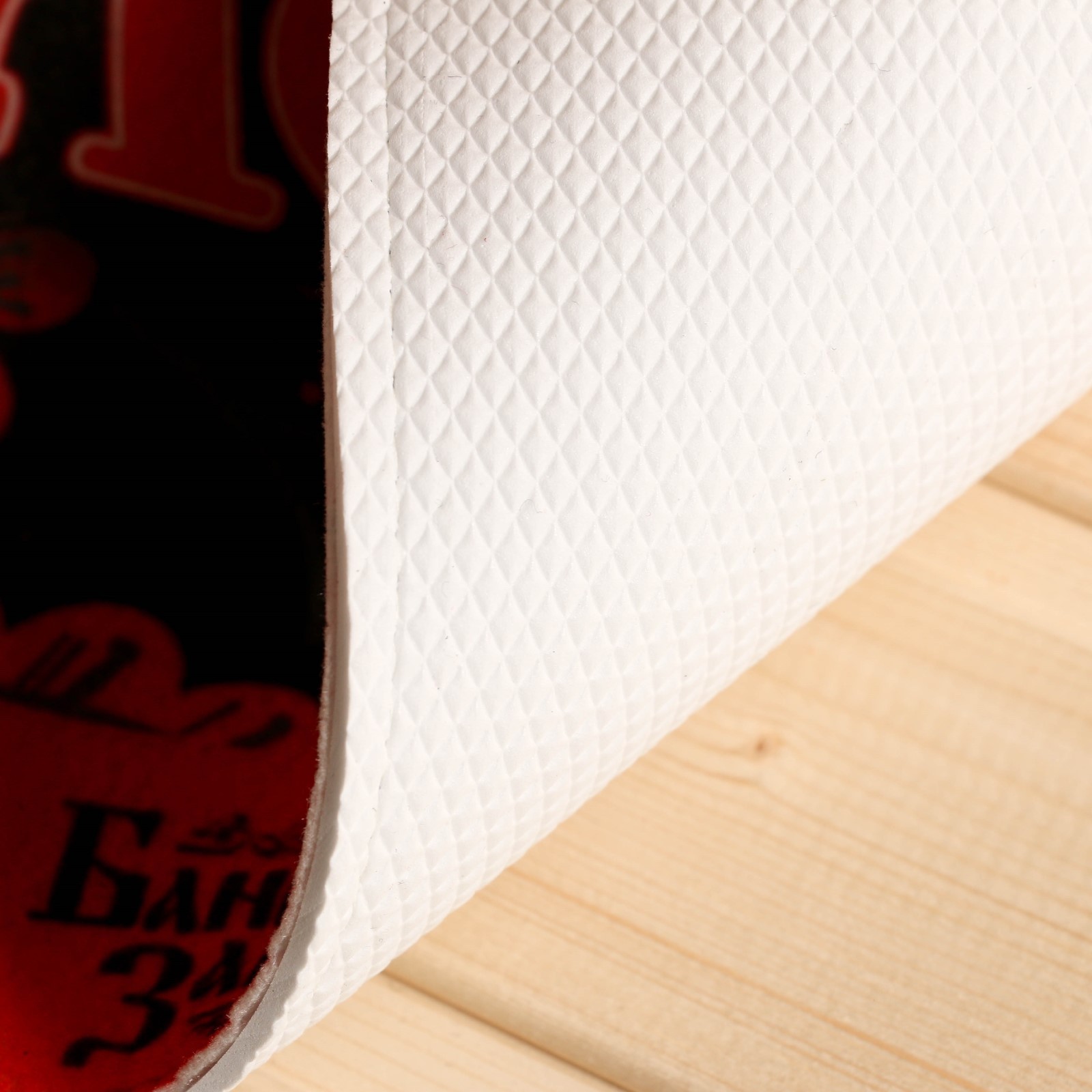 Коврик банный придверный с принтом «В баню без веника не входить» предназначен для использования в бане или сауне. Он обеспечивает комфорт и безопасность при использовании, сохраняет тепло ног, что особенно актуально в холодное время года. Материал коврика — войлок, который обладает теплоизолирующими свойствами, а EVA-покрытие обеспечивает долговечность и устойчивость к износу, а также обладает антискользящими свойствами.