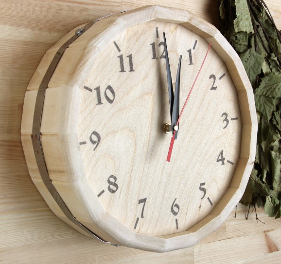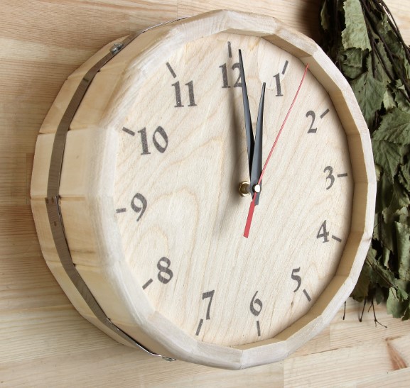 Часы банные бочонок «Банные штучки» предназначены для использования в бане или сауне как элемент интерьера. Часы сделаны из дерева, имеют кварцевый тип механизма, круглую форму и цвета циферблата: белый, зелёный, коричневый.