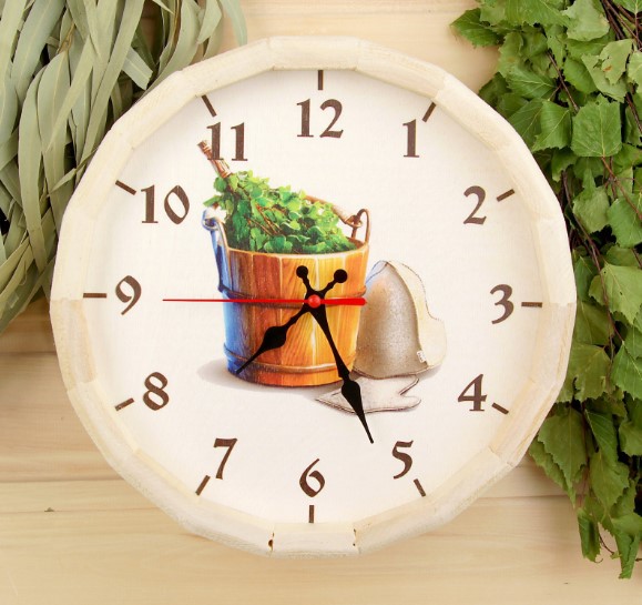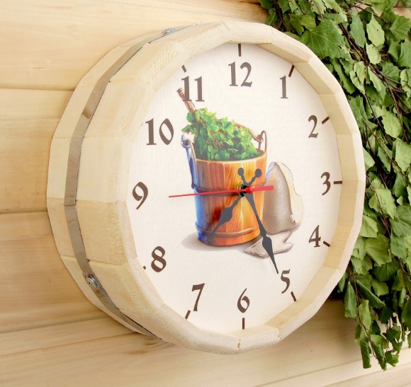 Часы банные бочонок «Банные штучки» предназначены для использования в бане или сауне как элемент интерьера. Часы сделаны из дерева, имеют кварцевый тип механизма, круглую форму и цвета циферблата: белый, зелёный, коричневый.