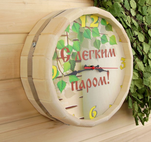 Часы банные бочонок «Банные штучки» предназначены для использования в бане или сауне как элемент интерьера. Часы сделаны из дерева, имеют кварцевый тип механизма, круглую форму и цвета циферблата: белый, зелёный, коричневый.