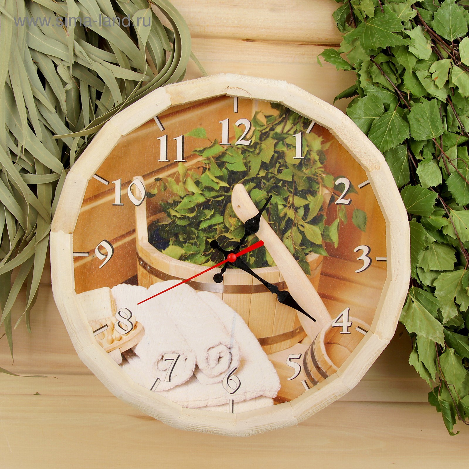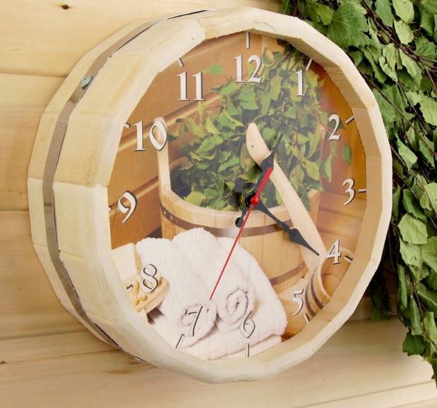Часы банные бочонок «Банные штучки» предназначены для использования в бане или сауне как элемент интерьера. Часы сделаны из дерева, имеют кварцевый тип механизма, круглую форму и цвета циферблата: белый, зелёный, коричневый.