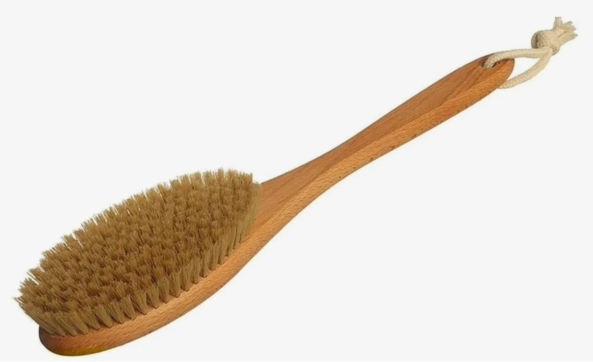Массажная щётка из натуральной щетины предназначена для сухого массажа тела. Некоторые цели использования таких щёток: Отшелушивание кожи. Щетинки удаляют мёртвые клетки с поверхности кожи, в результате тело становится мягким и бархатистым. Улучшение кровообращения. Щётка оказывает раздражающее действие и ускоряет движение крови по сосудам. Укрепление сосудов. Активное кровообращение — это профилактика застойных явлений в сосудах и варикозного расширения вен. Стимуляция выработки коллагена и эластина. Поступление питательных веществ активирует обновление этих волокон, которые отвечают за плотность и упругость кожи. Лимфодренаж. Массажная техника помогает улучшить отток лимфы из тканей, что способствует выведению лишней жидкости и устранению отёков. Общее оздоровление. Массаж сухой щёткой улучшает работу пищеварительной и нервной систем, а также помогает укрепить иммунитет. У массажа сухой щёткой есть противопоказания, поэтому перед процедурой рекомендуется проконсультироваться с врачом.