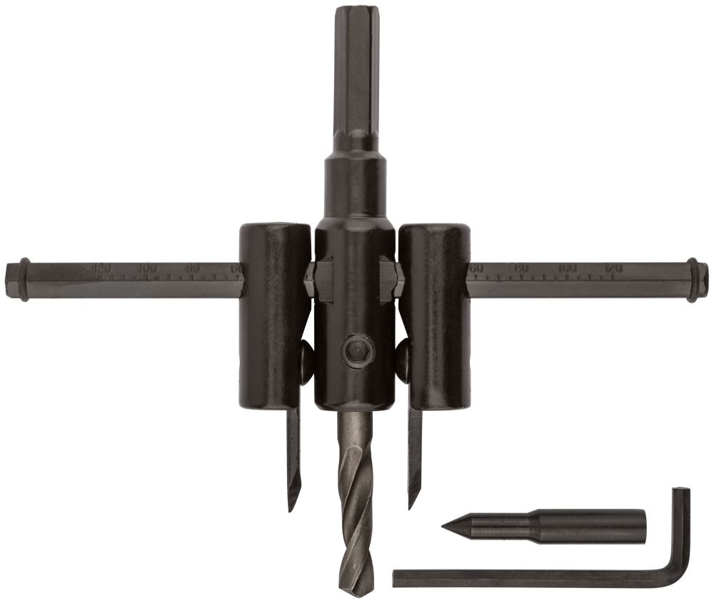 Для высверливания отверстий в гипсокартоне, дереве. С регулируемым диаметром. Материал: центральное сверло из инструментальной стали, резцы из легированной стали.