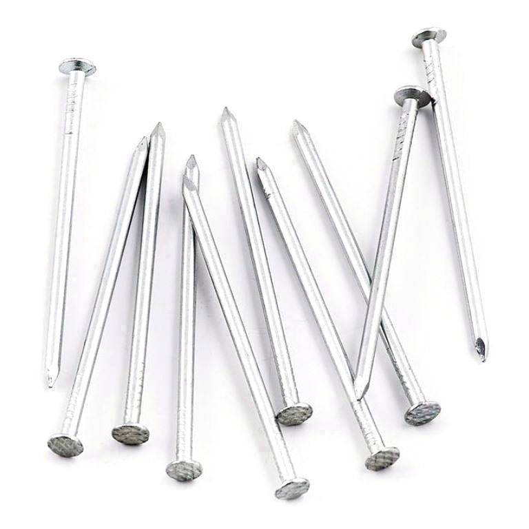 Гвоздь представляет собой длинный и прямой стержень с небольшими неровностями рядом со шляпкой, что улучшает качество соединения.