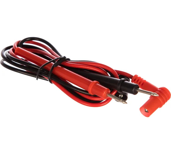 Щупы REX04 для тестера и токовых клещей. Подсоединяются к гнездам мультиметра, для удобства имеют разные цвета: черный и красный. Как правило, черный щуп подключается на общее гнездо, а красный — на гнездо «+». Клеммы, провода и ручки щупов надежно изолированы для защиты пользователя от поражения электрическим током. Для удобства работы металлические концы щупов заострены.