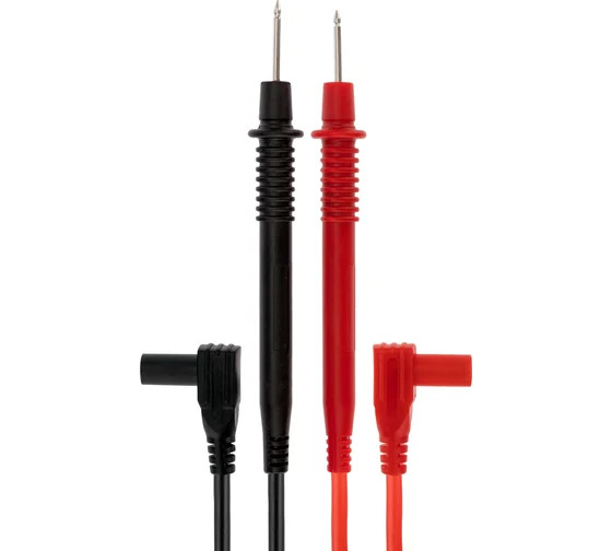Щупы REX07 для тестера и токовых клещей. Они подсоединяются к гнездам мультиметра, для удобства имеют разные цвета: черный и красный. Как правило, черный щуп подключается на общее гнездо, а красный — на гнездо «+». Клеммы, провода и ручки щупов надежно изолированы для защиты пользователя от поражения электрическим током. Для удобства работы металлические концы щупов заострены.