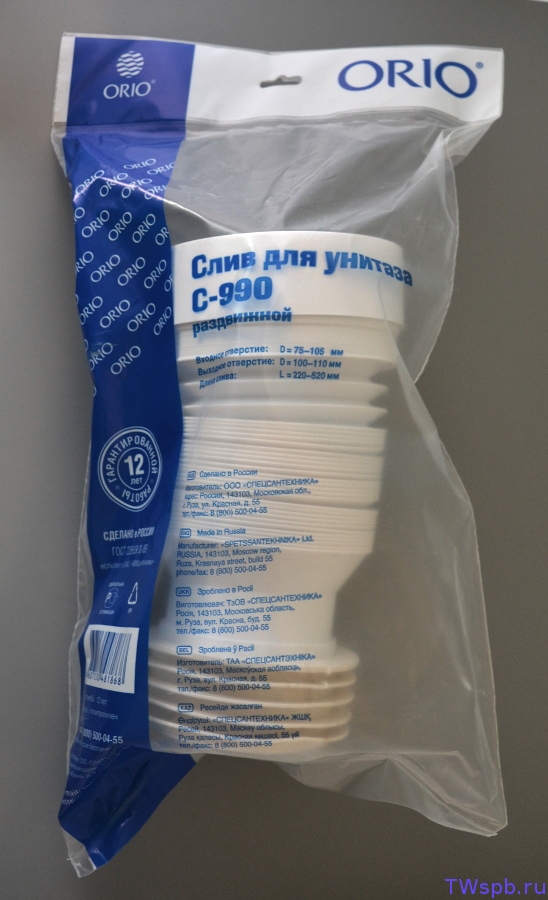 Предназначен для соединения выпуска унитаза с канализационной трубой диаметром 110 мм. Слив раздвижной, с металлической спиралью, длина 280-575 мм. Подходит для чугунных труб.