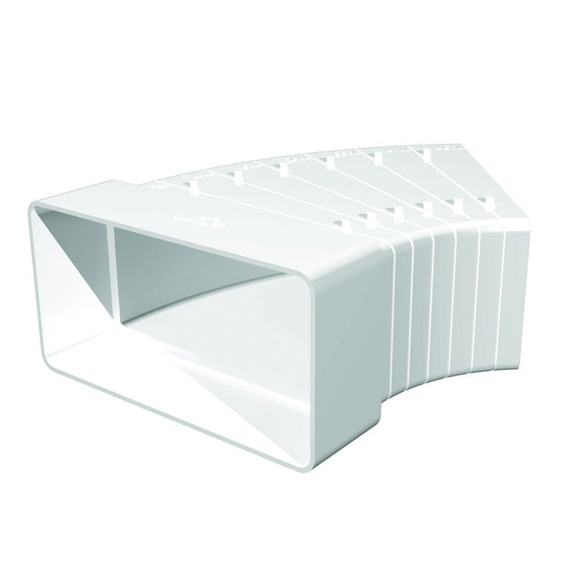 Колено разноугловое горизонтальное ERA 511КРП предназначено для соединения воздуховодов соответствующего сечения под углом от 3° до 48°. В зависимости от выбранного угла одна сторона соединителя подрезается. C каналами соответсnвующего сечения соединяется напрямую.