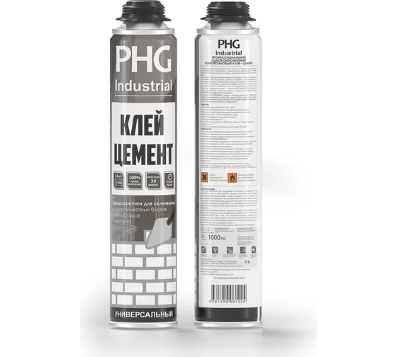 Профессиональный клей цемент PHG Industrial GLUE CEMENT 612290 - однокомпонентный полиуретановый клей, не имеющий вторичного расширения, применяется для склеивания общестроительных материалов, заменяя цементно- клеевые составы. Специализированная формула, обеспечивающая растекание клея по поверхности склеиваемых материалов, позволяет добиться глубокого проникновения, что улучшает прочность сцепления. Продукт позволяет увеличить производительность, так как не требует времени на замес клеевого раствора, а также очистку инструмента после работы. Преимущества Готов к применению Фиксация через 60 минут Обработка склеиваемых поверхностей через 30 минут Один баллон PHG Industrial GLUE CEMENT 612290 заменяет 1 мешок (20 кг) цементно- клеевой смеси