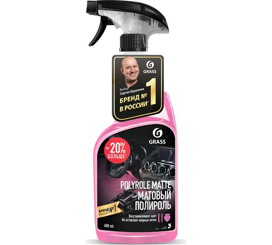Полироль-очиститель пластика матовый Grass Polyrole Matte клубника, 600 мл 110427 - профессиональный матовый полироль, предназначенный для обработки приборных панелей, неокрашенных бамперов, покрышек, для очистки полировки изделий из кожи, дерева, винила, пластика и резины. Очиститель пластика сохраняет первоначальный цвет, не оставляет жирных пятен, препятствует оседанию пыли, придает поверхности матовый эффект.