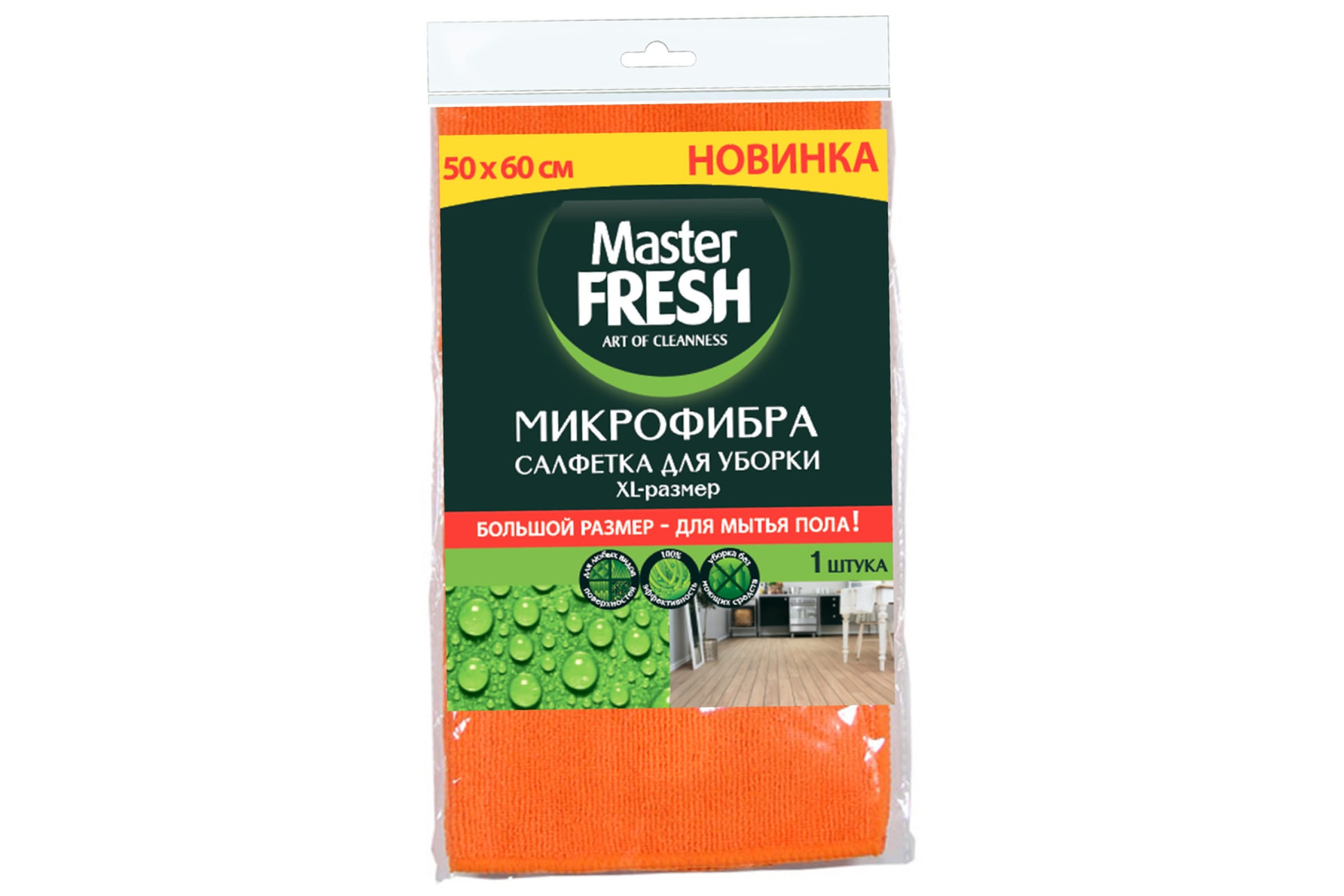 Универсальная салфетка для уборки большого размера (50*60см) изготовлена из уникального материала – микрофибры, которая позволяет делать уборку без применения моющих средств. Микрофибра эффективна для удаления пыли и мелкого мусора, легко удаляет стойкие загрязнения, не оставляет ворсинок и разводов.