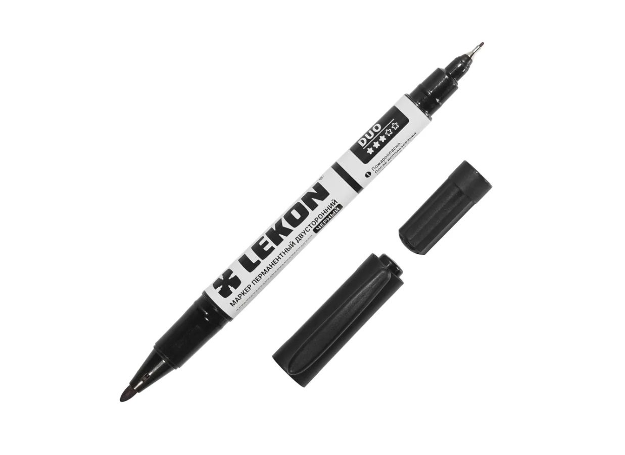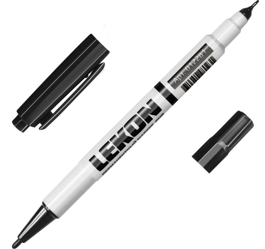 Маркер перманентный (нестираемый) двухсторонний. Красящий пегмент без ксилола и толуола. Одна сторона для линий толщиной 1 мм, вторая сторона 3 мм.