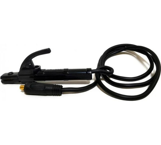 Кабель с электрододержателем Ресанта предназначен для фиксации электрода и подвода к нему тока во время сварочных работ методом MMA. Электропроводящие части изолированы от случайного прикосновения. Длина — 5 м. Сечение кабеля — 36 мм².