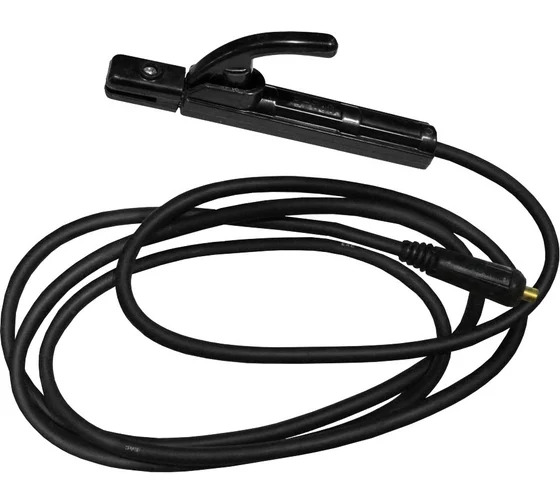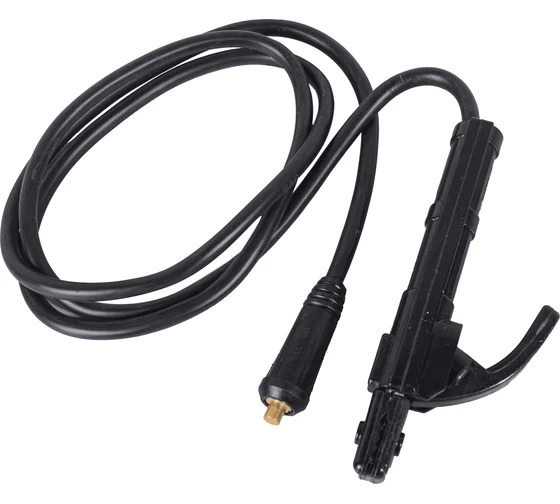 Кабель с электрододержателем Ресанта предназначен для фиксации электрода и подвода к нему тока во время сварочных работ методом MMA. Электропроводящие части изолированы от случайного прикосновения. Длина — 2 м. Сечение кабеля — 25 мм².