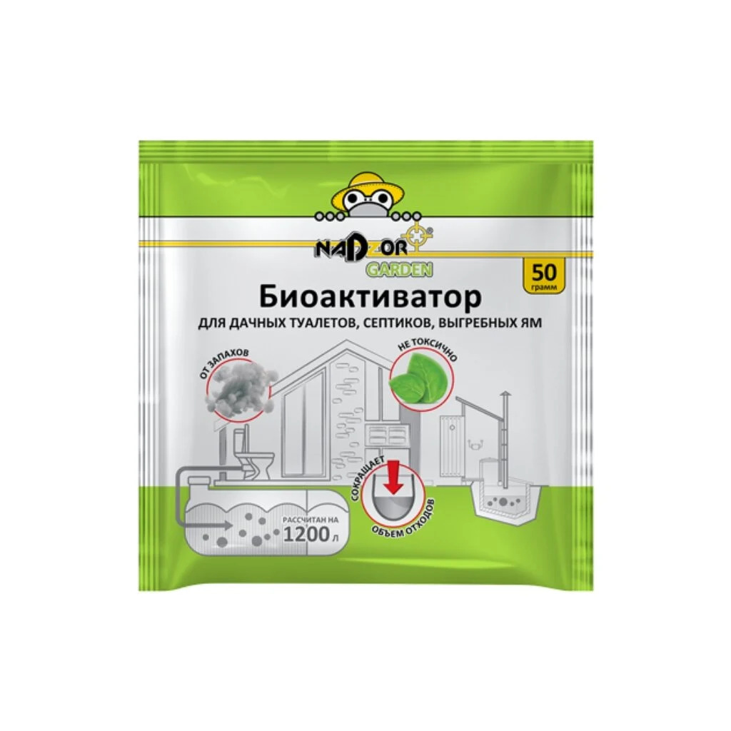 Одна упаковка (50 г) биоактиватора BIOWC4 Nadzor Garden рассчитана на объём до 1200 л в течение 2 месяцев.
