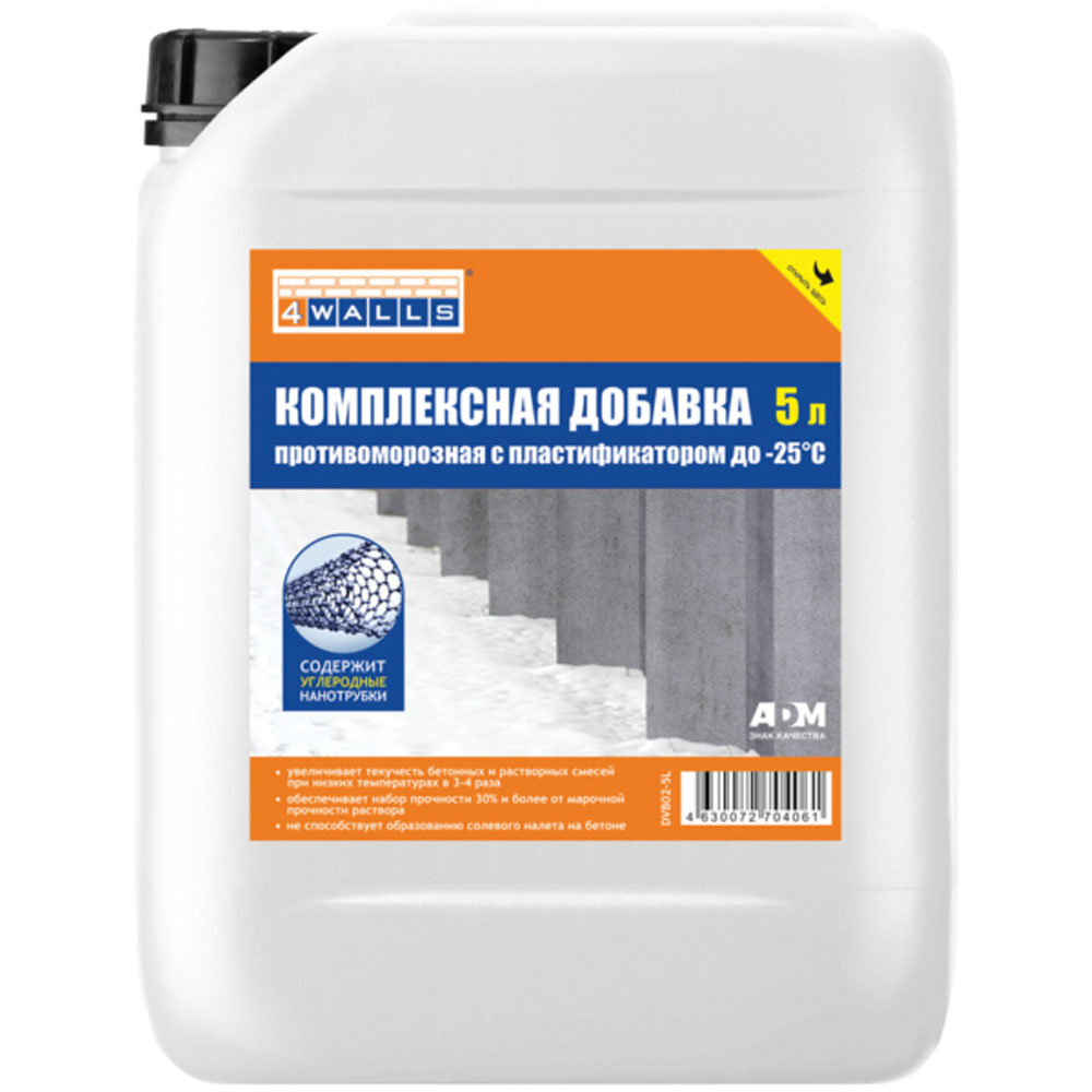 DVB02-5L — это комплексная противоморозная добавка с пластификатором, предназначенная для использования в строительных растворах при температурах до -25°C.