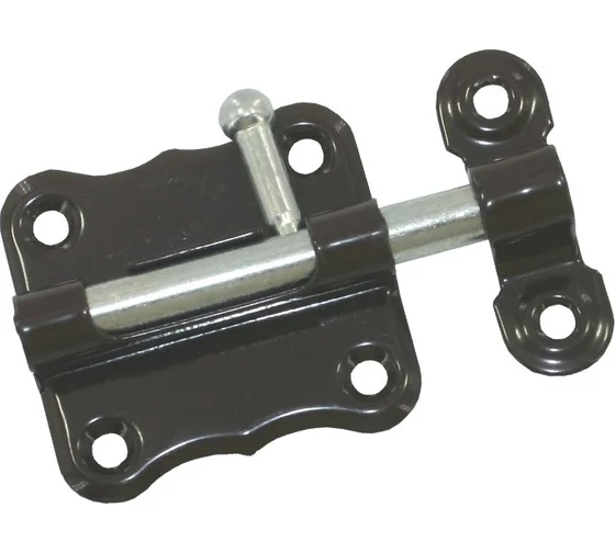 Задвижка накладная представляет собой классический шпингалет и пользуется большой популярностью. Изделия этого типа используются для запирания дверей в жилых домах, административных зданиях, на производственных объектах и т. п. Конструктивно шпингалет состоит из трех частей: корпуса, ригеля и ответной планки. Конструкция корпуса обеспечивает надежную фиксацию ригеля в закрытом и открытом положениях. Крепление корпуса и ответной планки осуществляется саморезами. Декоративно-защитное покрытие (полимер коричневый) в отличие от цинкового покрытия защищает изделия от коррозии в несколько раз дольше.