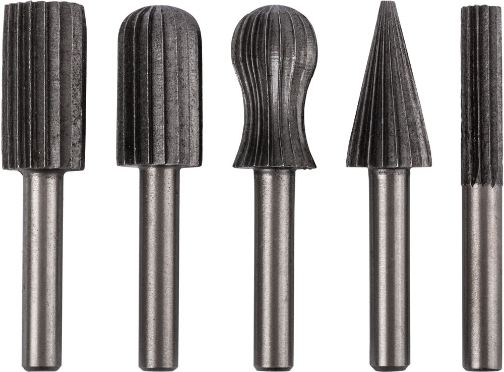 Шарошки 5 шт. FIT HQ 36476 используются для обработки изделий из металла с помощью дрели. Предназначены для доводки фигурных отверстий. В набор входят насадки, предоставляющие возможность обработки поверхностей различного профиля. Изготовлены из быстрорежущей стали HSS.
