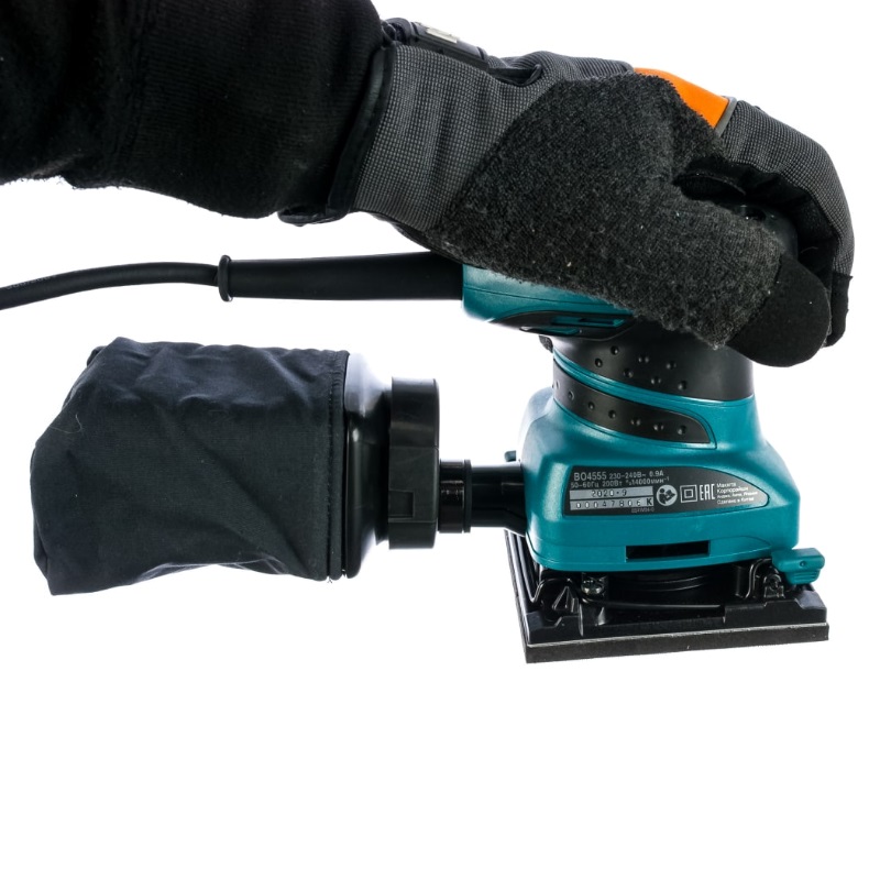 Вибрационная шлифмашина Makita DBO480Z орбитального типа с амплитудой 1,5 мм позволяет зачищать даже труднодоступные места за счет применения треугольной опоры.В шлифмашине реализована традиционная защита батареи и двигателя от перегрузки по току, перегрева и снижения уровня зарядки. Кроме того, в инструкции отмечено, что в агрегате имеется защита и от других неполадок, при возникновении которых привод останавливается автоматически.Управление инструментом осуществляется с помощью пары кнопок. Одна из них подает питание на привод и используется для изменения скорости, вторая предназначена для останова. Кнопкой включения питания с помощью последовательного нажатия можно выбрать два значения скорости движения привода – 11 и 14 тыс. движений в минуту.Шлифмашина комплектуется перфорирующей пластиной, поэтому в ней можно использовать шлифовальную бумагу без отверстий для сбора пыли. Бумага с отверстиями входит в комплект поставки инструмента. Вариант применения бумаги с липучкой тоже доступен. Крепление бумаги – с