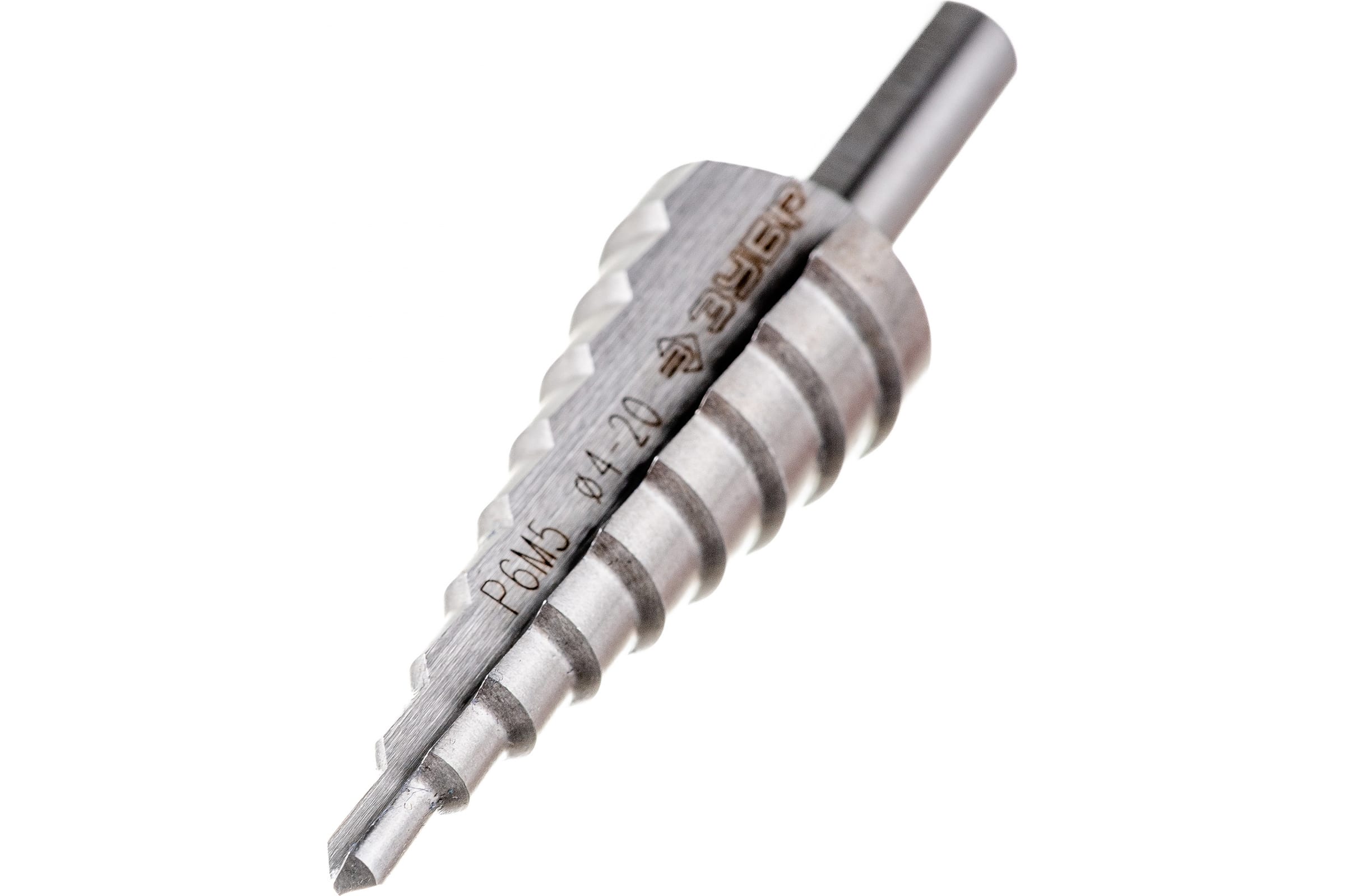 Сверло ступенчатое ЗУБР 29670-4-20-9_z01 предназначено для сверления металлических конструкций и заготовок, листовых материалов, цветных металлов, пластика. Рекомендованы для использования для сверления листового металла толщиной до 4мм, цветных металлов, пластмасс и других материалов. Крестообразная подточка позволяет начать сверление без предварительных работ. Угол заточки при вершине равный 135° для ускорения процесса сверления. Сверло изготовлено методом вышлифовки из быстрорежущей стали Р6М5 и соответствует классу точности "А1" . Сверло ступенчатое для получения отверстий различного диаметра без перестановки режущего инструмента. На каждой ступени есть маркировка фактического диаметра. Количество ступеней — 9 шт. Высота ступени — 5.5 мм.