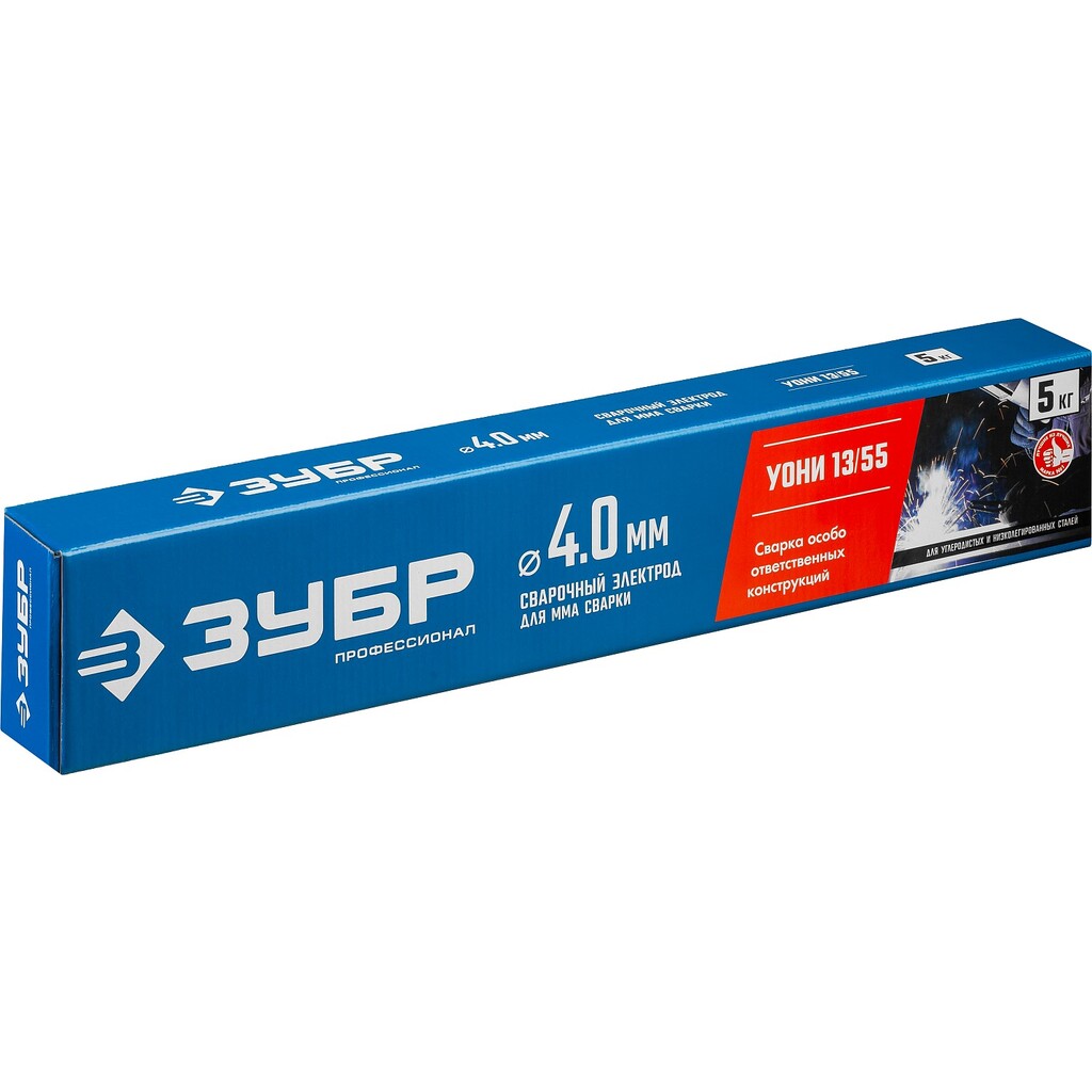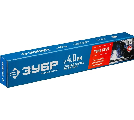 Сварочный электрод ЗУБР УОНИ 13/55 40025-4.0 применяется для сварки ответственных конструкций из углеродистых сталей на ММА инверторах на постоянных токах обратной полярности. Имеет высококачественное основное покрытие металлического стержня, позволяющее вести сварку особо ответственных металлических конструкций во всех пространственных положениях, кроме "сверху-вниз". Обладает легким розжигом сварочной дуги на постоянном токе обратной полярности. В химическом составе покрытия полностью отсутствует содержания серы и хлора. Электроды изготовлены в России на современном оборудовании по оригинальной технологии и рецептуре. Соответствуют всем действующим стандартам и требованиям ГОСТ и НАКС.