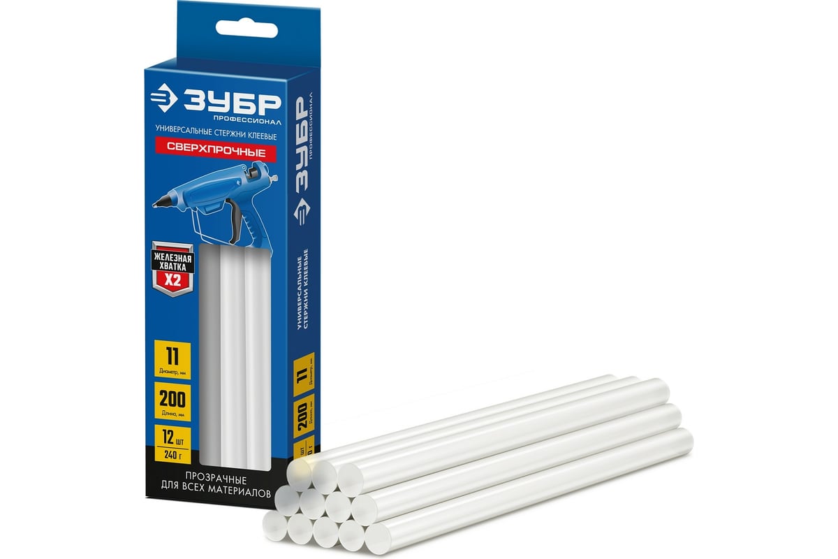 Стержни для термоклеевого пистолета 06856-12 диаметром 11 мм от компании ЗУБР применяются в домашнем ремонте, творческих и отделочных работах для склейки и фиксации различных материалов. Качественный материал изготовления, обладает отличной адгезией при нагревании до 150°C и сочетается с большинством материалов. За счет большой длины 200 мм клеевые стержни используются довольно экономично. Цвет клеевого состава – прозрачный.