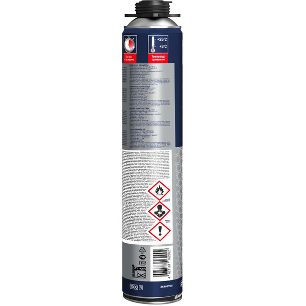 Tytan Professional 70 пена профессиональная зимняя предназначена для герметизации, тепло – и шумоизоляции швов, щелей, пустот, монтажа деталей при выполнении строительных и отделочных работ, а также в различных областях промышленности и в быту (за исключением прямого контакта с пищевыми продуктами). Монтажная пена обладает высокой адгезией к большинству строительных материалов за исключением полиэтилена, полипропилена, силикона и фторопласта. Обеспечивает хорошую термо – и звукоизоляцию. Затвердевший продукт можно резать, штукатурить, окрашивать. Необходимо защищать продукт от воздействия УФ-лучей и атмосферных осадков. Продукция безвредна для озонового слоя атмосферы.