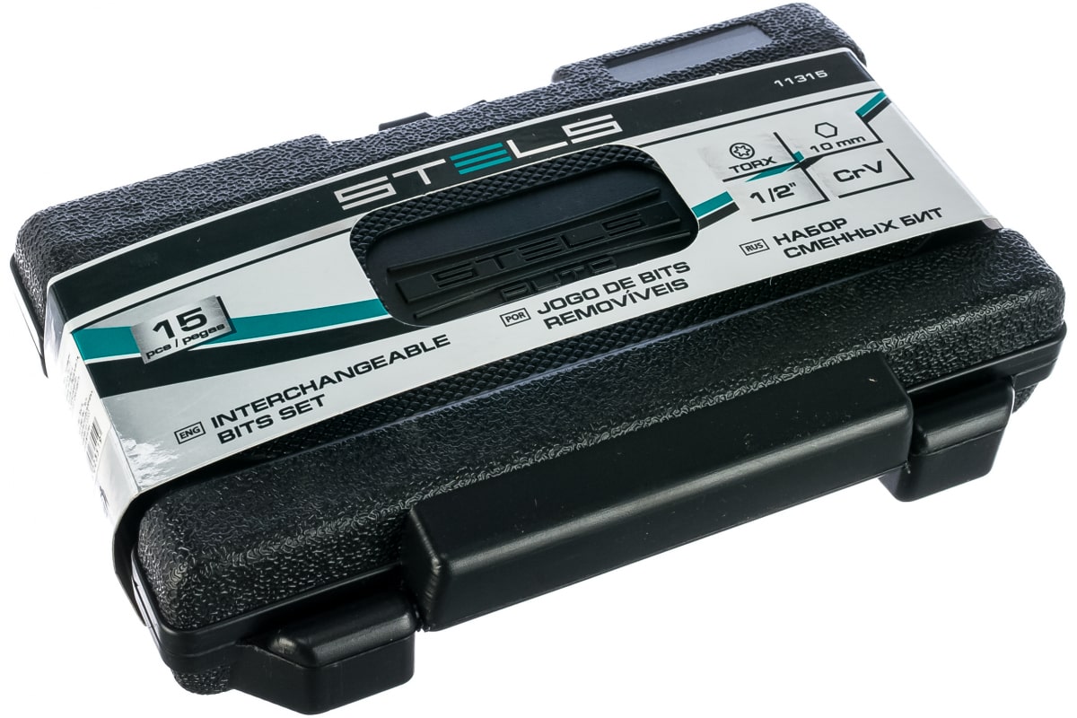 Набор Stels 11315 включает биты TORX из стали CrV, с шестигранным хвостовиком 1/2 дюйма, и состоит из 15 предметов: насадок Т20, Т25, Т30, Т40, Т45, Т50, Т55 длиной 35 и 75 мм, а также переходника. Биты имеют шлицы в форме звезды и предназначены для установки на ключ-трещотку, пневматическую трещотку или пневматический гайковерт. Оснастки оптимально подходят для работы с крепежными элементами типа TORX во время сборки и ремонта автомобилей.