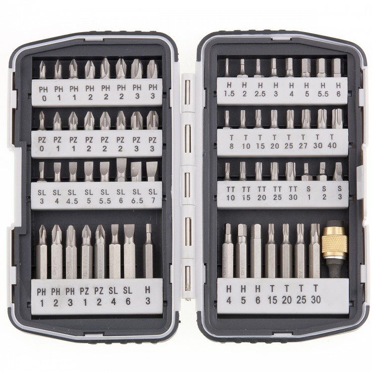 Набор бит Matrix 11327 из 64 предметов используется совместно с шуруповертами и отвертками типа при работе с резьбовыми соединениями. Кроме бит длиной 25 мм в комплект входит 15 насадок длиной 50 мм, которые обеспечивают удобство работы в труднодоступных местах. Прочность и высокая коррозионная стойкость — биты из стали CrV подходят для интенсивных работ. Магнитный адаптер позволяет быстро менять биты, повышая скорость работы с крепежом различного типа. За счет магнитных свойств адаптера бита не выпадает при закручивании и откручивании крепежа, поэтому работать с таким набором комфортнее. Биты не потеряются при работе и транспортировке, т. к. в поставляются в пластиковом боксе.