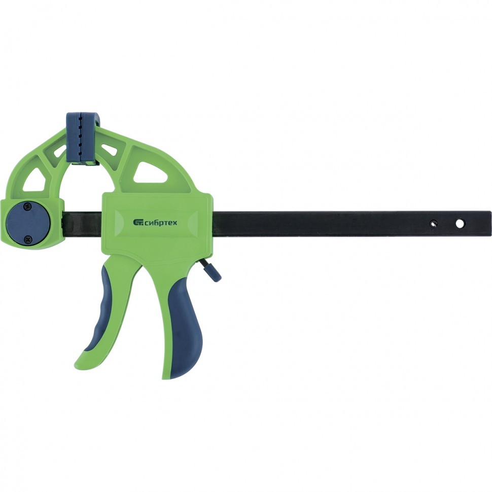 F-образная быстрозажимная струбцина Сибртех в пластиковом корпусе, с фиксатором и двухкомпонентной рукояткой, позволяет зажимать заготовки для их дальнейшей обработки или сборки. Помогает решать множество задач благодаря оптимальной глубине зажима. Пластинчатый механизм пошагово перемещает подвижную губку вдоль направляющей до достижения максимально плотного захвата детали. Фиксатор препятствует движению губки в обратную сторону. Струбцина пригодится в столярной мастерской, а также будет полезна в быту.
