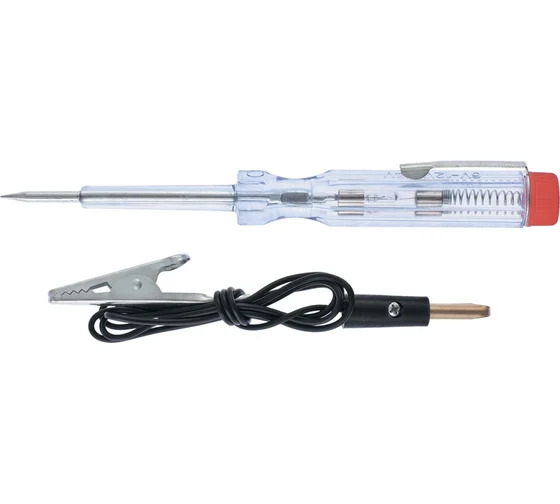 Автомобильный пробник SPARTA 6-24 В 555205 предназначен для проверки напряжения постоянного тока. Рабочий диапазон составляет 6-24 В. Инструмент имеет контактную острую иглу с одной стороны, и зажим "крокодил" с другой. Контакт с зажимом "крокодил" необходимо подключать к корпусу автомобиля. Прочный пластиковый корпус оснащен специальной скобой для крепления пробника на ремень.