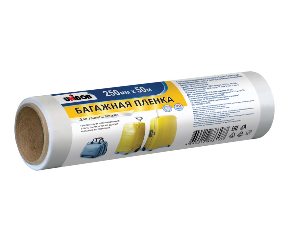 Белая багажная стрейч пленка UNIBOB 250 мм x 50 м, толщина 20 мкм – это незаменимый материал для упаковки и защиты багажа при переезде. Она защищает от внешних воздействий, таких как УФ-лучи, влага и пыль. Пленка удобна в использовании и экономична, а также эстетична и предотвращает появление трещин, сколов и царапин на упакованных вещах. Она герметично упаковывает предметы благодаря слипанию слоев пленки без клеевой основы и обладает высокой прочностью к разрыву, проколу и удару. Пленка способна растягиваться и без разрыва, экономя расход пленки. Количество слоев – однослойная. Ширина рулона составляет 250 мм, цвет товара – белый, а количество в упаковке – 1 рулон. Толщина пленки – 20 мкм. Материал – полиэтилен, а тип пленки – стрейч. Форма выпуска – рулон. Назначение – хозяйственно-бытовые и упаковочные цели, профессиональное использование.