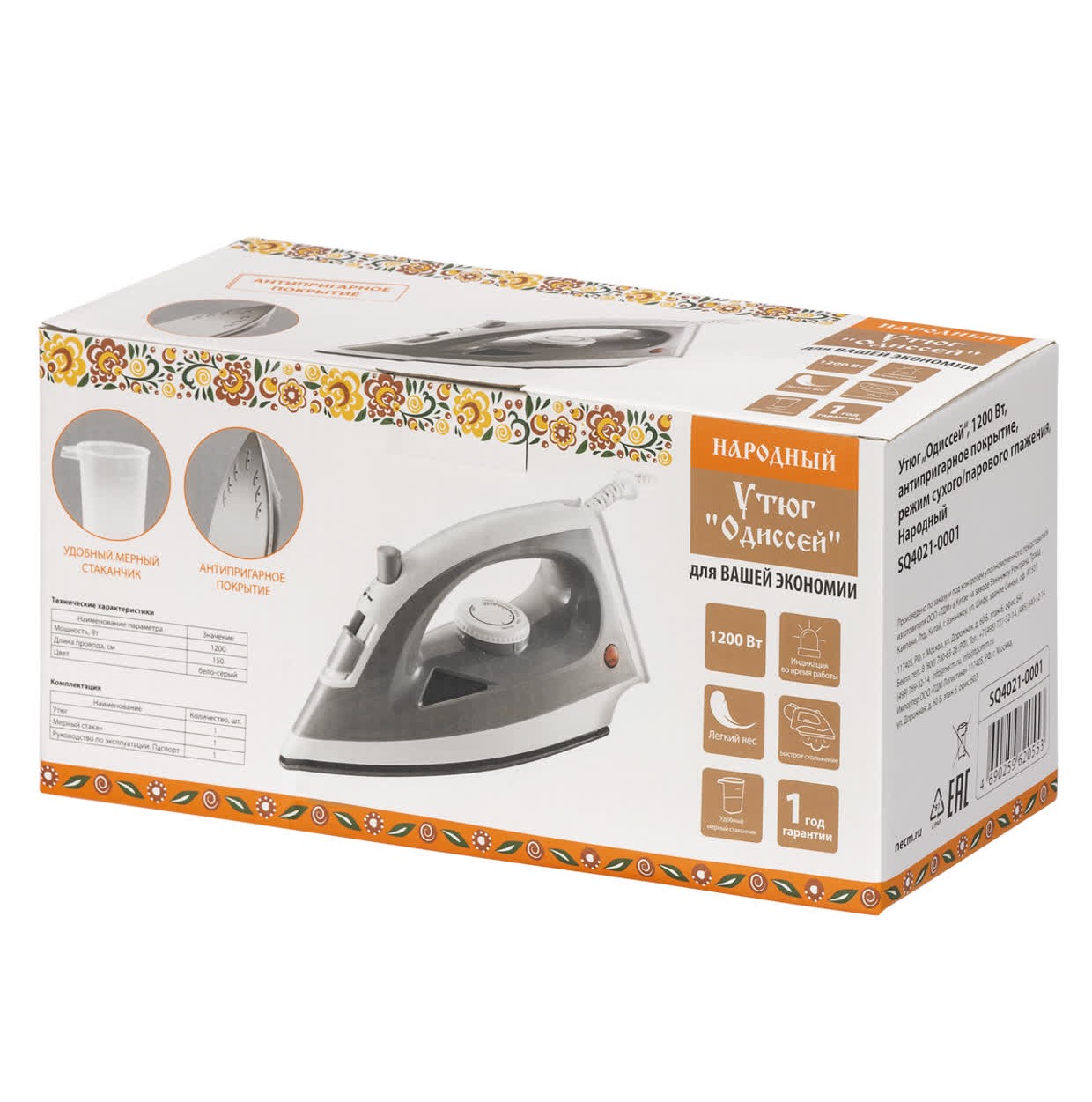 Утюг TDM Одиссей 1200 Вт, антипригарное покрытие, режим сухого/парового глажения, Народный SQ4021-0001 предназначен для глажения белья, домашнего текстиля, одежды.Благодаря большой площади подошвы экономит время и обеспечивает равномерную подачу пара.Прост в использовании, за счет чего не требует специальных навыков.Устройство имеет эргономичную форму, поэтому удобно лежит в руке.