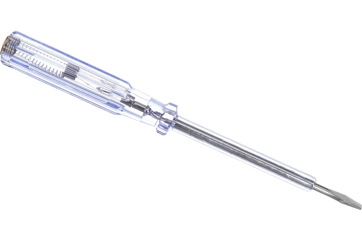 Отвертка индикаторная с белой ручкой и диапазоном от 100 до 500 В представляет собой инструмент, который используется для проверки наличия напряжения в электрических цепях. Ручка отвертки имеет белый цвет. Такая окраска ручки позволяет легко идентифицировать инструмент в среде, где применяется множество других отверток с различными окрасками или без них. Индикаторная функция отвертки позволяет проверить наличие или отсутствие напряжения в электрической цепи. Отвертка имеет узкое лезвие с изолированной ручкой для защиты пользователя от контакта с электрическими элементами. Для большей надежности инструмент имеет металлическую тестовую иглу на конце рукоятки, которая используется для проведения контроля напряжения. Отвертка индикаторная с диапазоном от 100 до 500 В является незаменимым инструментом для электриков и других специалистов, которые постоянно взаимодействуют с электрическими системами и оборудованием. Это надежный и безопасный способ проверки наличия напряжения в электрической сети перед началом рабо