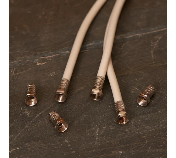 Резьбовой F-разъем RG-6 REXANT применяется при подключении видеосистем, кабельного и эфирного телевидения. Предназначен для соединения коаксиального кабеля с телевизионным и видеооборудованием: ресиверы, телевизоры, всевозможная видеоаппаратура и т.д. Изготовлен из никелированного сплава меди (биметалл). Обеспечивает высокую стойкость соединения. Коннектор данного вида не оснащен собственным штекером, поэтому его роль выполняет центральная жила кабеля, что позволяет избежать потерь сигнала. Коннектор RG-6 устанавливается вручную методом накрутки на внешнюю оболочку кабеля. Предварительно необходимо зачистить контакты. Монтаж не требует пайки или применения специальных инструментов. Типы подходящих кабелей: RG-6, SAT-50, SAT-703, DG-113. Наружный диаметр подходящих кабелей: примерно 6,8 мм.