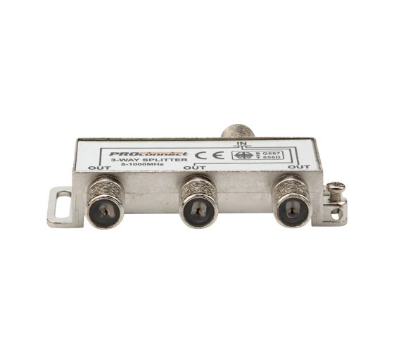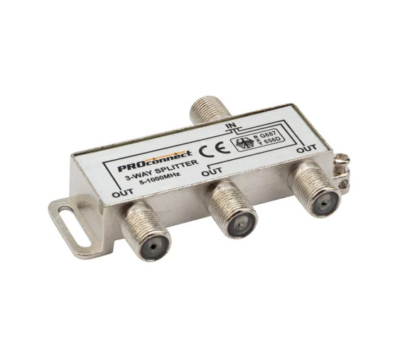 Делитель ТВ PROCONNECT на 3 выхода F разъём 5-1000 МГц 05-6022 незаменим в любой системе эфирного телевидения, а также в бытовых условиях, когда необходимо подключить к одной антенне несколько телевизоров или ресиверов. Делитель ТВ на 3 выхода под F-разъем предназначен для деления телевизионного сигнала, идущего от антенны к оборудованию, равномерно на число выходов. Данный ТВ сплиттер рассчитан под F разъём и имеет три выхода, т. е. сигнал, проходящий через сплиттер, делится на три части. Кабель подключается к этому делителю с помощью F-разъемов. Делитель подходит для сигналов, имеющих диапазон частот 5-1000 МГц, что соответствует эфирному телевидению. Делитель ТВ на 3 выхода под F разъём 5-1000 МГц PROCONNECT - это качественное и надежное решение для систем эфирного телевидения, имеющее высокие технические характеристики и выгодную цену.