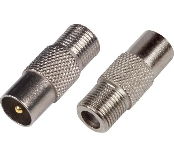 Переходник гнездо F — штекер F PROconnect предназначен для подключения эфирного, спутникового и кабельного телевидения с помощью радиочастотного кабеля с волновым сопротивлением 50 или 75 Ом. Он обеспечивает качественную передачу видео- и аудиосигнала с минимальными потерями. Во время установки сторона с гнездом F накручивается на кабель с F-разъёмом, а сторона со штекер TV соединяется с оборудованием. Монтаж не требует пайки контактов и использования специальных инструментов, что позволяет производить его в удалённых местах, например, на крышах домов или комплексов. Переходник изготовлен из никелированного цинка, что гарантирует надёжность соединения и возможность использования в разных климатических условиях. Он подходит для кабелей типа RG-6 и других коаксиальных кабелей (SAT-50, SAT-703, DG-113) с наружным диаметром около 6,8 мм.