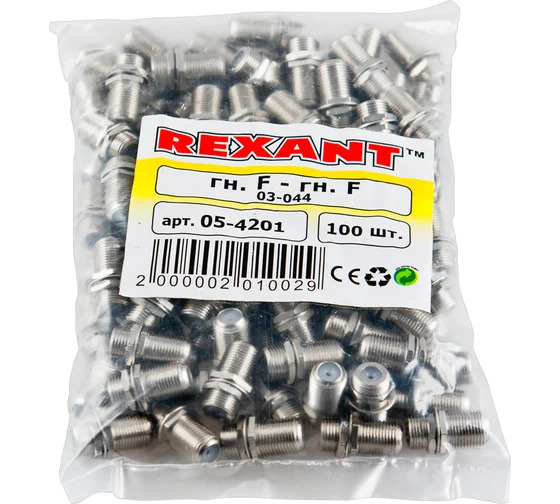Переходник REXANT предназначен для соединения двух частей коаксиального кабеля волновым сопротивлением 50 или 75 Ом, на концах которых расположены штекеры F-разъема. Применяется главным образом для подключения эфирного, кабельного и спутникового телевидения к телевизионному оборудованию. В частности, он позволяет увеличить длину антенного кабеля или соединить поврежденный участок. Изготовлен переходник из никелированного сплава первичной меди (биметалл), что обеспечит долговечность соединения и возможность применять его в условиях климатических перепадов. Разъем соединяет кабель методом накрутки F-коннектора с обеих сторон после соответствующей зачистки контактов и не требует в ходе монтажа применения каких-либо специальных инструментов.