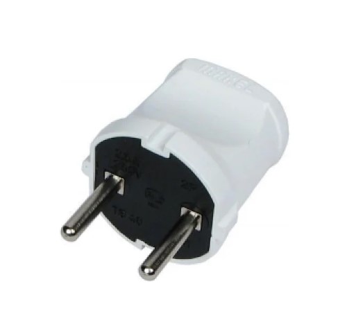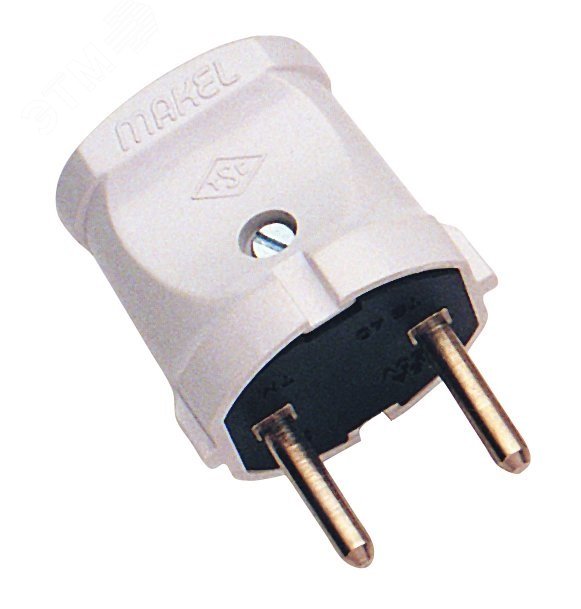 Прямая белая вилка Makel без заземления предназначена для оперативного подключения и отключения электрических приборов от питающей сети в бытовых условиях.