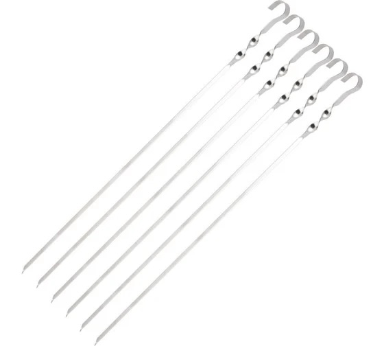 Набор шампуров Ecos 560х10х1.0мм, угловой, с витком, 6шт. 009382 подходит для приготовления мяса, овощей, курицы, грибов. Изделия выполнены из нержавеющей стали толщиной 1 см, что гарантирует долгий срок службы. Заостренный конец обеспечивает удобное насаживание продуктов.