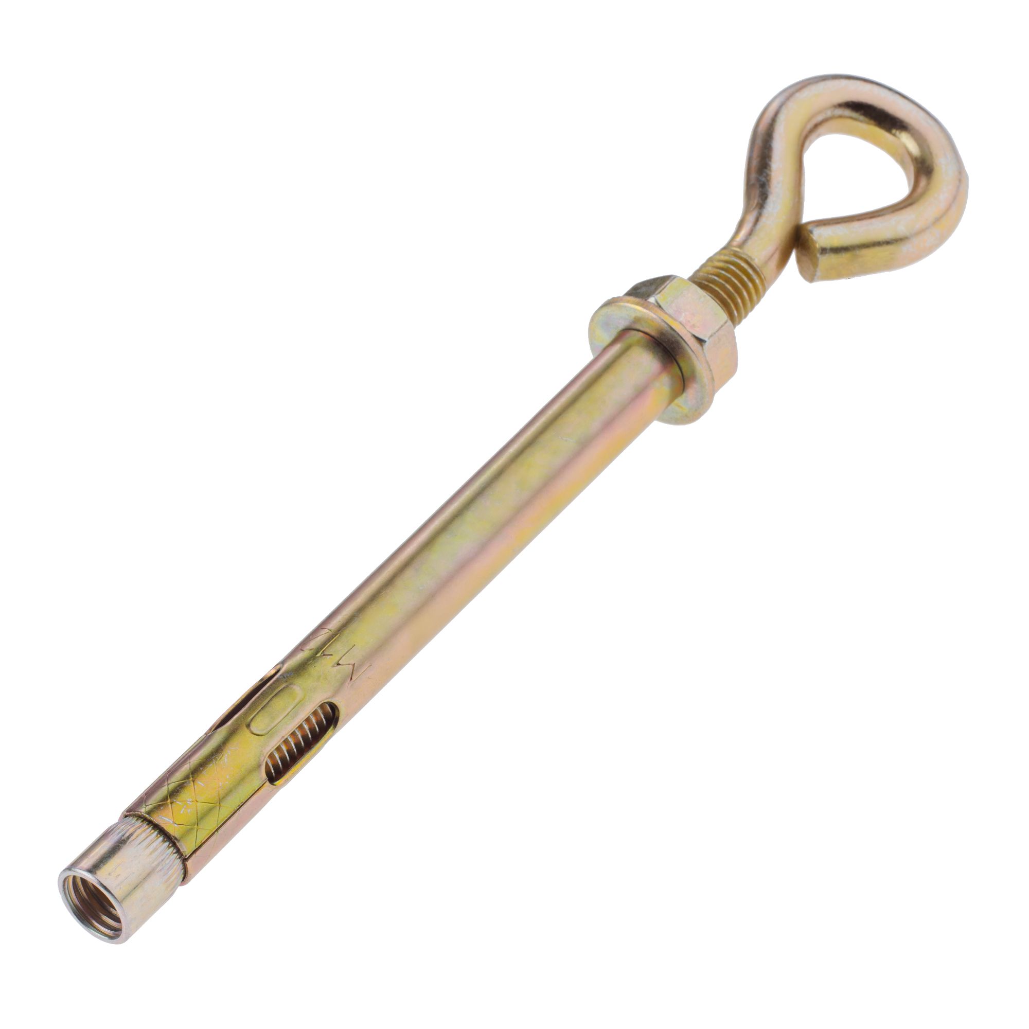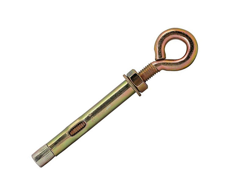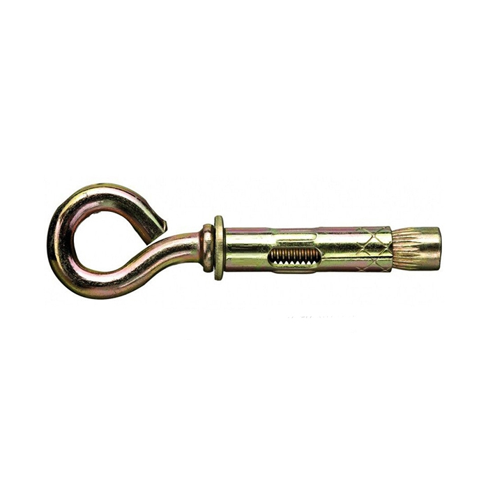 На конце болта расположено кольцо. При монтаже оно служит опорой для вертикально закрепляемого груза. Метод, как установить анкерный болт с кольцом, не отличается от технологии монтажа предыдущих видов крепежа. Анкер устанавливается в просверленное монтажное отверстие. При закручивании стержня втулка распирается и надежно фиксируется в теле материала.