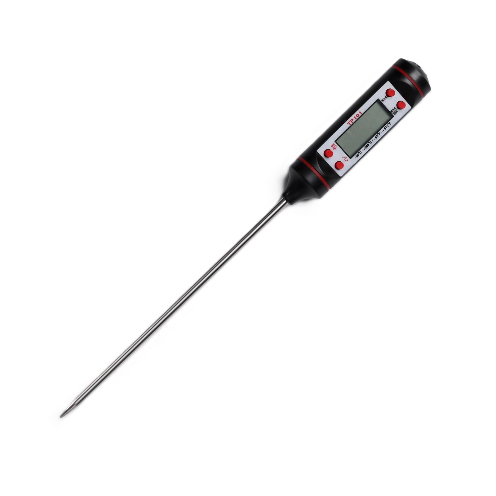 Электронный термометр для пищи Доляна 1427367 предназначен для измерения температуры жидких, сыпучих и полутвердых сред методом погружения щупа-иглы в измеряемую среду.Представляет собой щуп из нержавеющей стали с пластиковой ручкой, в которую встроен дисплей.Простое и легкое в использовании устройство обладает низким электропотреблением, высокой стабильностью и точностью измерения температуры.Режим экономии электроэнергии: через 10 минут после использования выключается автоматически.