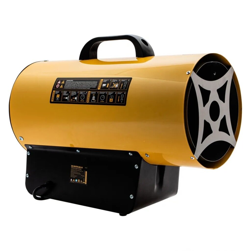 Газовая тепловая пушка Denzel GHG-30, 30 кВт, 900 м3/ч, пропан-бутан 96479 имеет большую тепловую мощность и применяется для работы в мастерских, гаражах, строящихся объектах, теплицах, фермах и на складах. Тепловая пушка отличается высокой производительностью 900 м3/ч при экономичном расходе топлива 2,0 кг/ч и компактных габаритах.