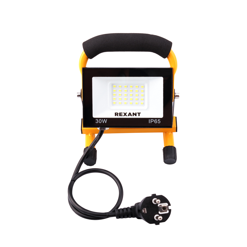 Прожектор подходит для освещения крупных территорий, может использоваться в различных условиях, включая строительные площадки, парковки и другие открытые пространства.