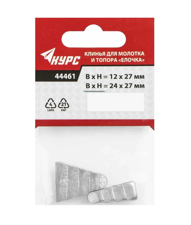 Клинья для молотка и топора «елочка» размером 12х27 мм и 24х27 мм предназначены для фиксации молотков и топоров с деревянными рукоятками. Размер 12х27 мм подходит для изделий с бойком до 1000 г, а 24х27 мм — для инструментов с бойком до 2000 г.