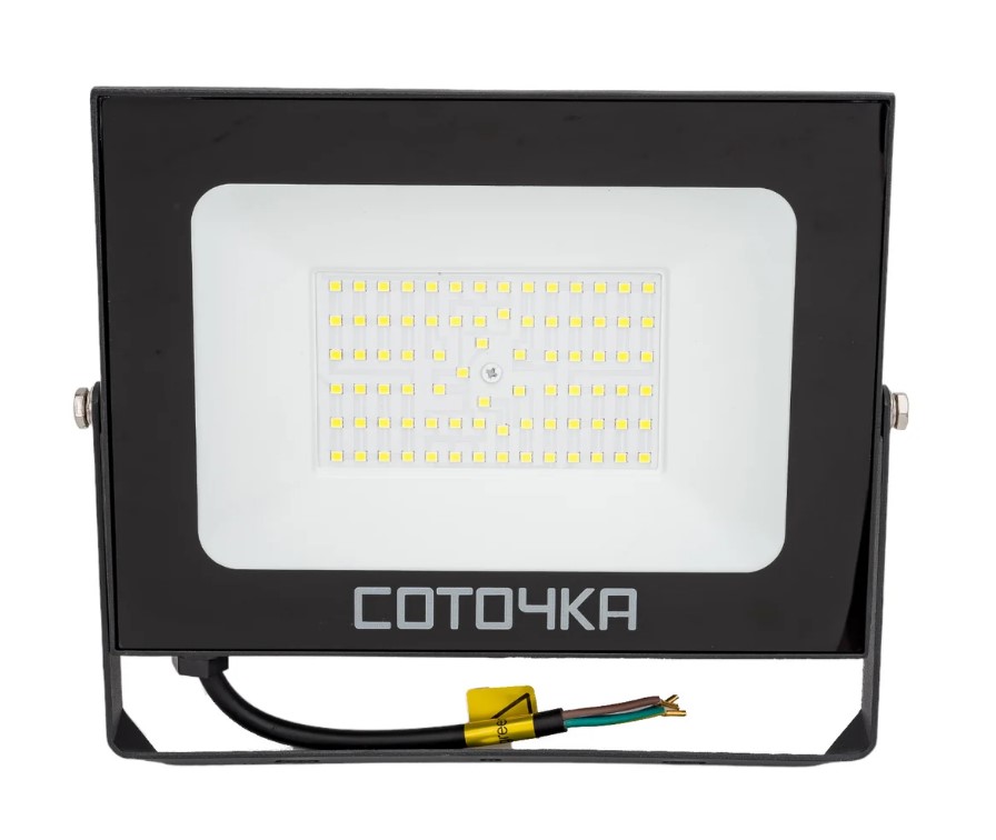 Прожектор подходит для освещения крупных территорий, может использоваться в различных условиях, включая строительные площадки, парковки и другие открытые пространства.
