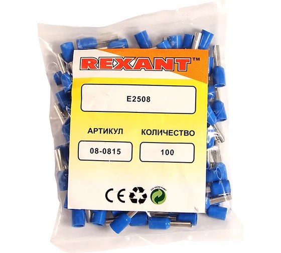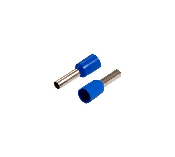 Наконечник штыревой втулочный изолированный (НШВИ F-8 мм) 2.5 мм² синий REXANT предназначен для создания быстрого и качественного подключения различного электрооборудования и монтажа электросетей. Такой современный способ подготовки кабеля к соединению заменяет процесс облуживания или скрутки многожильных медных проводов, формируя целостное окончание кабеля с последующим подключением промышленного или бытового электрооборудования. Втулочный наконечник состоит из латуни, с поверхностным электролитическим лужением, и рассчитан на монтаж одного проводника с соответствующим сечением под опрессовку. Предварительно зачищенная жила заводится внутрь латунной втулки и обжимается специальными пресс-клещами (ht-864 арт.12-3202, 12-3202-4; ht-866 арт.12-3205; ht8 6-4 арт.12-3106; ht-301E арт.12-3113, 12-3114, 12-3013) в считанные секунды. Для удобства заведения многожильного провода внутрь латунной втулки предусмотрена манжета конической формы, изготовленная из поливинилхлорида (ПВХ), обеспечивающая надежную защиту соединения от влаги и других внешних воздействий. Такой быстрый способ подключения кабеля значительно сэкономит ваше время на монтаж электросети.